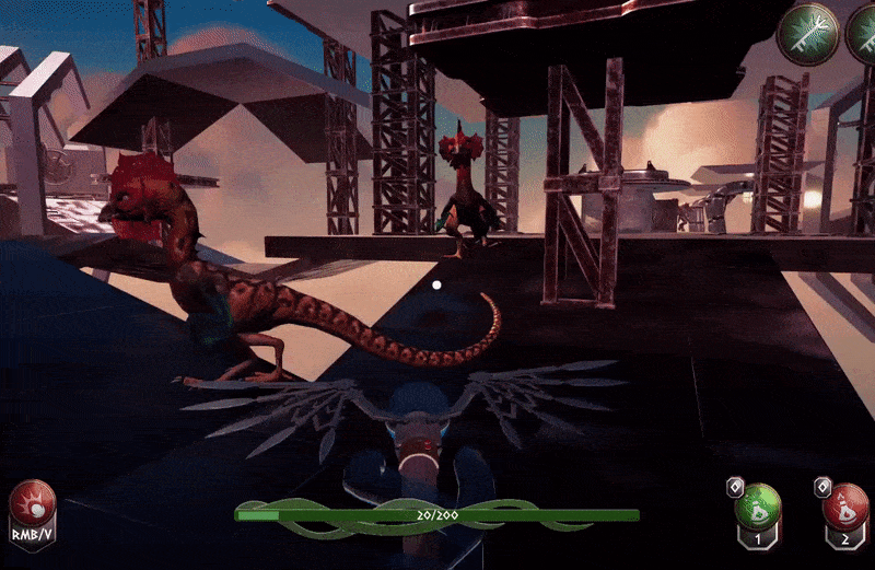 I worked closely with another enemy programmer to implement the attack behavior of the flying phoenix enemy. Once detected, the phoenix circles the player, shooting fireballs and dive bombing periodically. Unfortunately, much of this behavior didn’t make it into the final product and had to be cut due to time constraints. The final iteration of the dive bomb now initiates a self-destruct instead of the above behavior.